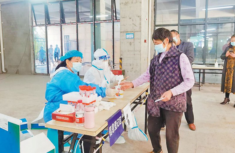 十月十四日,舉人壩社區干部和志愿者在核酸采集一線。(受訪者供圖)