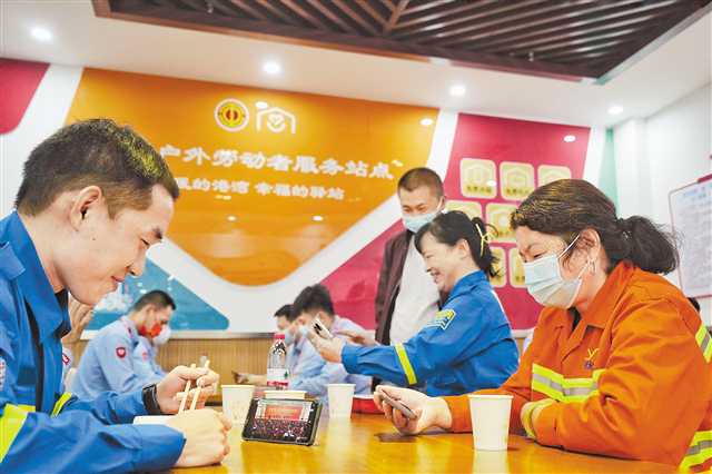 10月23日,九龍坡區二郎街道工會戶外勞動者服務站點,勞動者們集中收看二十屆中共中央政治局常委同中外記者見面會直播。見習記者 劉旖旎 攝/視覺重慶