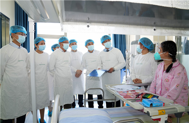 重醫附屬兒童醫院泌尿外科醫生對患兒進行術后查房。黃飛虹攝