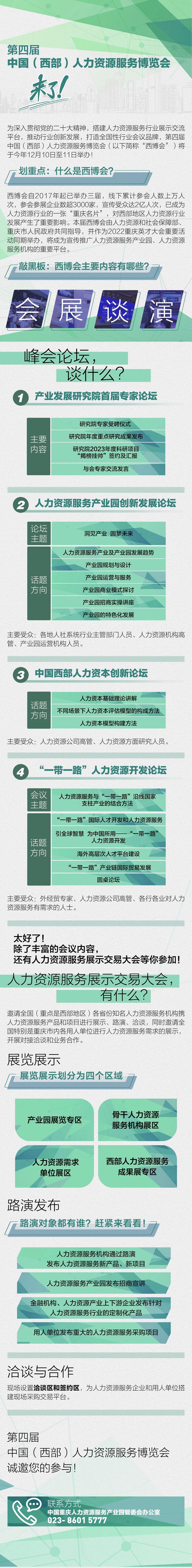 中國重慶人力資源服務產業園管委會消息,作為2022重慶英才大會的重要活動之一,第四屆中國(西部)人力資源服務博覽會(以下簡稱“西博會”)將于今年12月10日至11日在重慶國際博覽中心舉行。