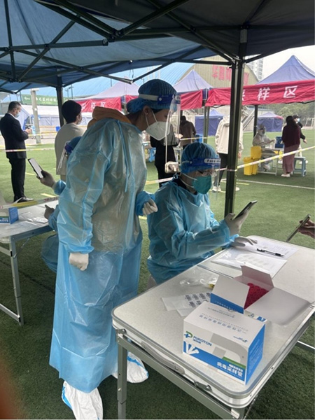 浦發銀行工作人員協助開展核酸檢測。浦發銀行重慶分行供圖