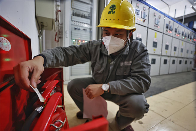 工作人員檢查商場配電設備。郭旭攝? ? ?