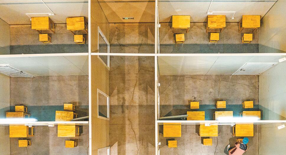 11月18日,位于重慶國際博覽中心的悅來方艙醫院14個方艙全部建成投用,總建筑面積25萬平方米,可容納患者1.2萬余名。方艙內24小時均有醫護人員服務,還安排有學習區、心理疏導人員等。截至18日24時,悅來方艙醫院已累計收治患者5000余名。圖為方艙設置的學習區。記者 陳維燈 鄭宇 攝影報道/視覺重慶