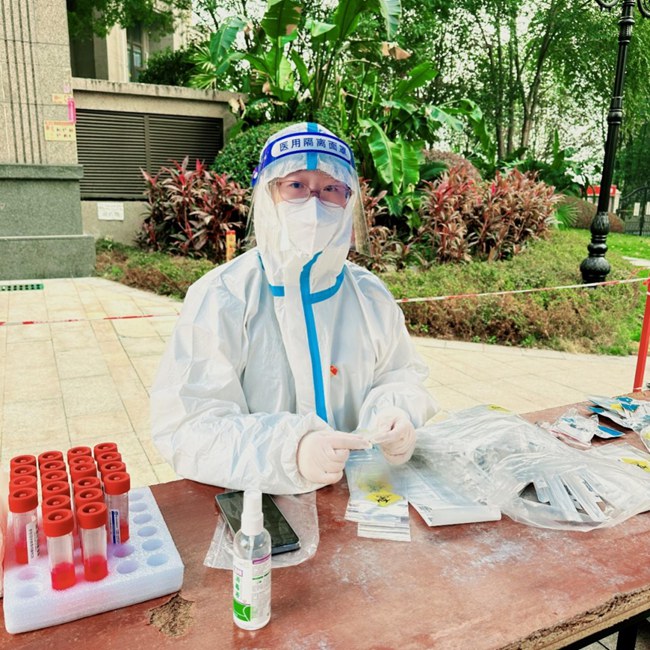11月,重慶暴發新一輪疫情,王靜在線上居家辦公之余,還在社區擔負起志愿者核酸登記、秩序維護、抗原發放等工作。