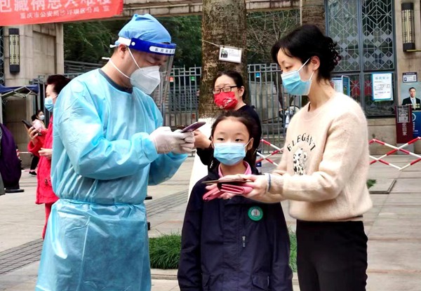 而陳秋云和經營科稽核人員、黨員周維被分到了小龍坎街道參與志愿服務。11月13日,陳秋云在平頂山上一個小區幫忙登記居民信息并制作通行證。這里居住的大部分是老年人,有些還不會寫字,陳秋云耐心的幫他們填信息。晚上6點多,陳秋云正收拾東西準備下山,這時接到了街道的電話,需要繼續協助防疫管控。周維也接到了通知。