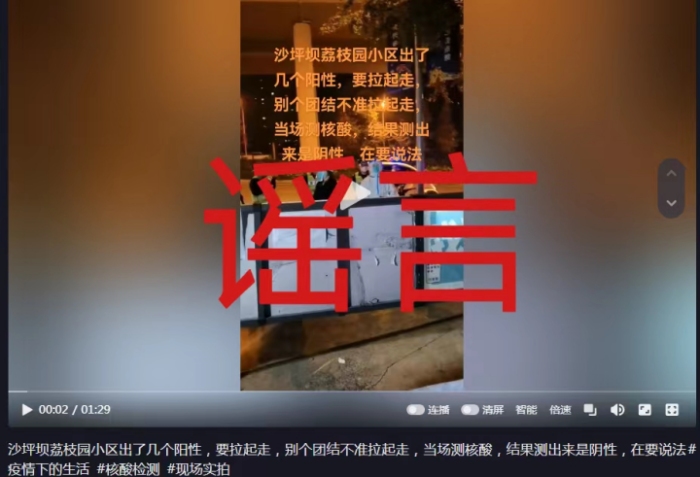 疫情防控,人人有責。再次呼吁廣大市民,不信謠、不傳謠、不造謠,文明上網、理性發聲,共同維護清朗網絡空間。(來源:沙坪壩區融媒體中心)