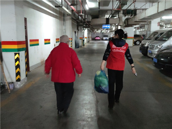 工作人員為老人送菜到家。順泰物業供圖