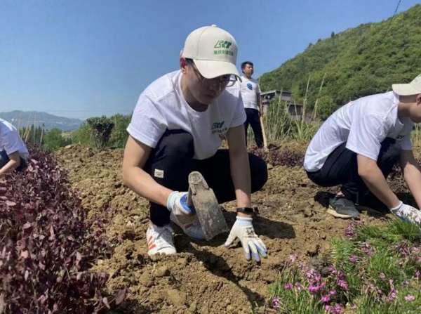 另外,20名來自重慶軌道集團運管中心團委的團員青年代表來到重慶市云陽縣廟塆村,為當地居民開展結對共建、講黨課等多項活動。此外,團員青年代表們還為村委會帶去了苗木3000余株,完成約100多平方米的居民區綠化帶打造。