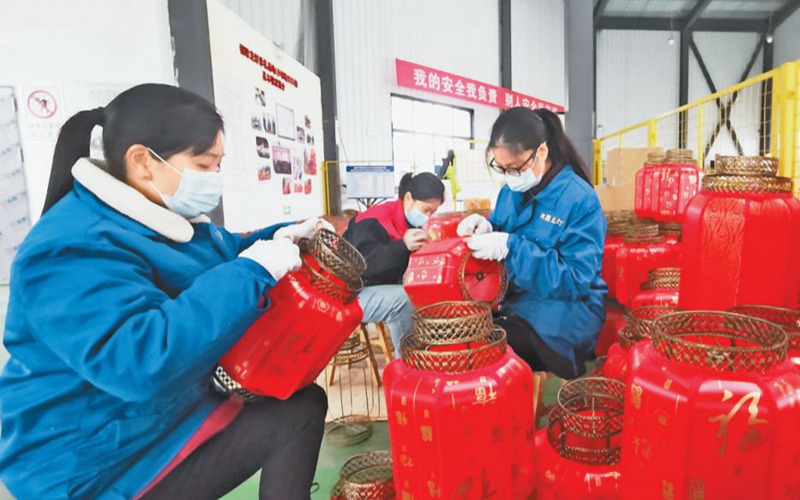 12月8日,銅梁區太平鎮坪漆村鄉村振興車間,農家婦女正在趕制訂單燈籠。近來,該區40多個鄉村振興車間在做好疫情防控的基礎上全部復工,上千名村民在家門口務工增收。通訊員 趙武強 攝/視覺重慶