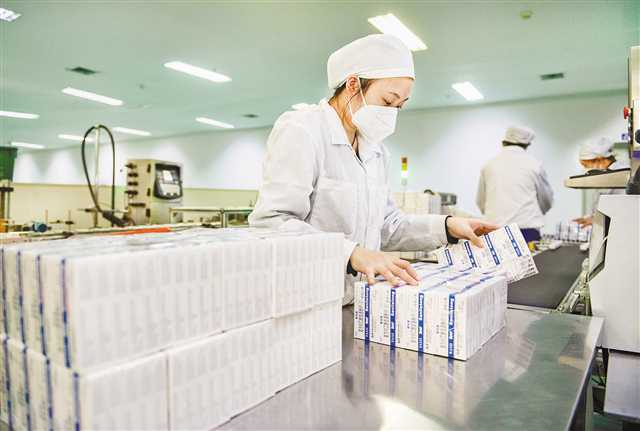 12月20日,位于沙坪壩區的西南藥業股份有限公司,工作人員在口服固體制劑車間包裝藥品,包裝產線以最快每分鐘270盒藥品的速度飛速運轉。