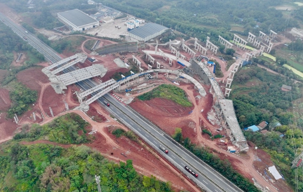 “目前惠民互通施工已完成近8成?!敝貞c交建相關負責人介紹,目前,惠民互通主線橋鋼梁吊裝已完成,現澆預應力連續箱梁已完成7聯,匝道橋的下部結構施工全部完成。預計今年7月,惠民互通將完成全部梁片架設及橋面系等土建工程,進入路面工程施工。