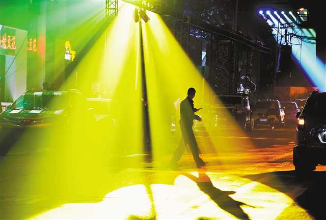 行人也在光影藝術節的燈光里成為風景的一部分。