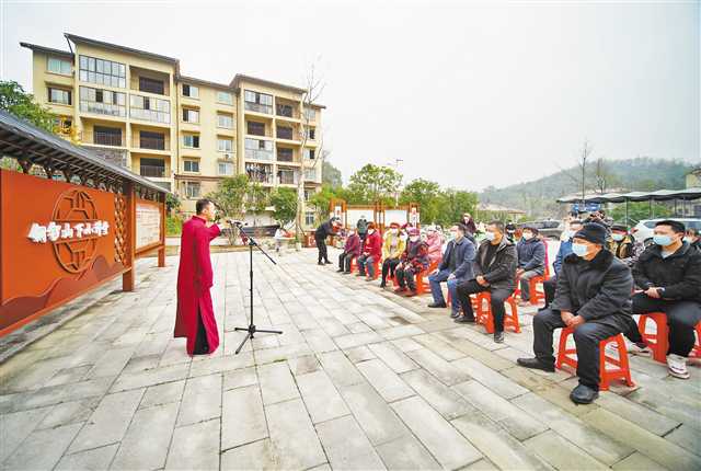 “講得好!我們喜歡聽?!?月5日,渝北區委宣傳部組織4位理論名嘴走進石船鎮“銅鑼山下小講堂”,宣講黨的二十大精神。平實的鄉土話,曲藝、金錢板等形式,受到當地干部群眾歡迎。