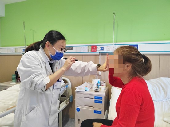 醫護人員為朱女士做術后檢查。重慶愛爾眼科醫院總院供圖