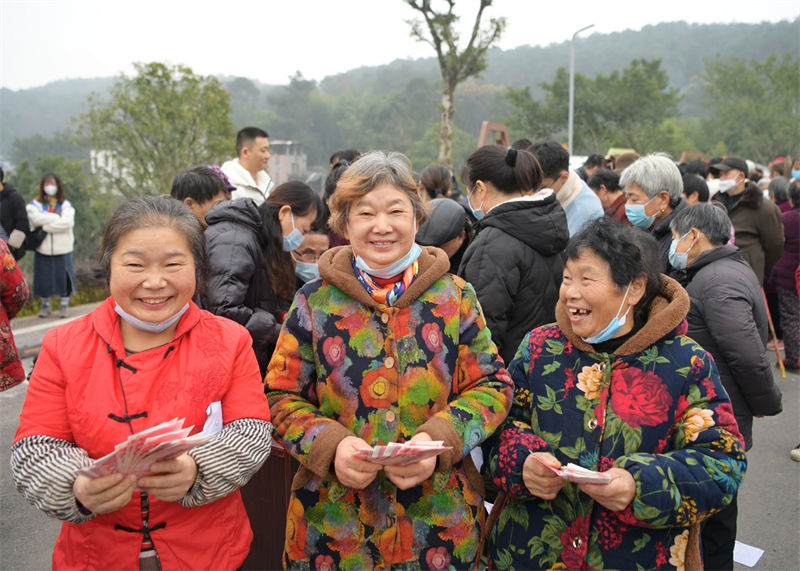 “為了今天來領分紅,我前天專門買了件紅色的新衣裳!”1月12日上午,重慶市南岸區南山街道放牛村村委會院壩里,69歲的余正璧穿著嶄新的大紅棉襖,和鄰居們有說有笑。