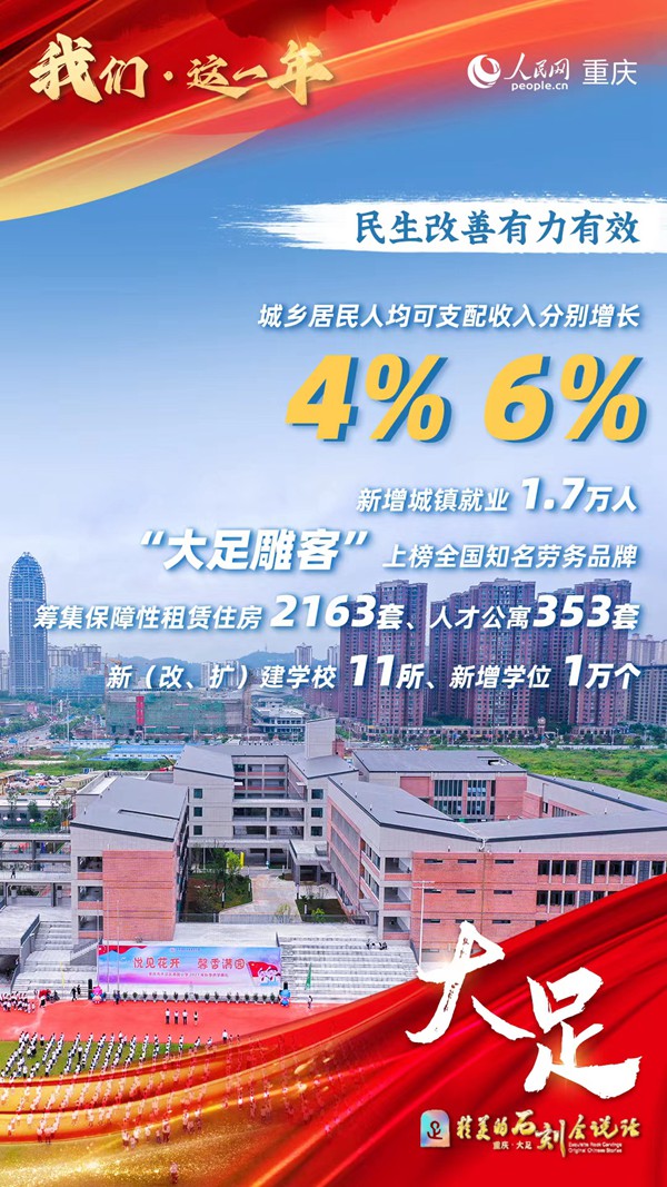 人民網重慶1月15日電 在今年的重慶市六屆人大一次會議上,市政府工作報告提出,成渝地區雙城經濟圈建設成勢見效,川渝兩地滾動實施三批次重大合作項目、完成投資3916億元,311項“川渝通辦”事項落地見效。這不僅是成都與重慶兩座千萬級城市之間的攜手共贏,更讓“圈”中的一些區(市、縣)嘗到了甜頭,特別是重慶的橋頭堡城市之一——大足區。