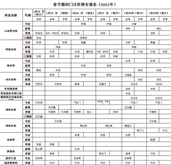 (一)1月21日(除夕)至1月23日(初二)門診停診。