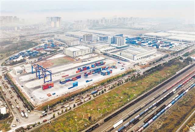 帶著這樣的“逆向思維”,重慶提出了一個創新構想:將西部陸海新通道原本要在海港進行的鐵路與海運的組織銜接、鐵路箱與海運箱的置換流轉等服務,前置到陸運環節。陸海新通道無水港,應運而生。