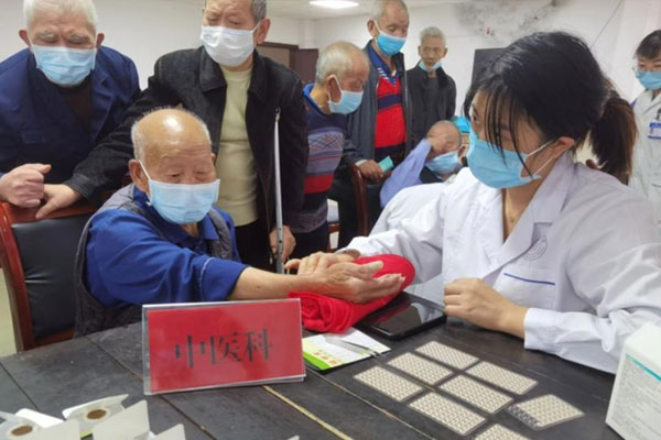 大興鎮中心衛生院醫生周林為養老院老人提供中醫服務,并給出健康指導。大興鎮中心衛生院供圖