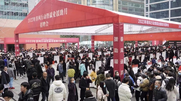 人民網重慶2月11日電 (陳琦、劉敏)為幫助返鄉務工人員、就業困難人員等重點群體返崗復工和就業。2月10日-11日,重慶渝中區在解放碑開展2023年“春風行動”暨就業援助月現場招聘會,206家企業來到現場招人。