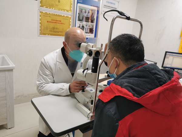 陳伯凡為患者檢查視力情況。重慶普瑞眼科醫院供圖