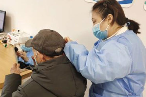為老人試配助聽器。重慶仁品耳鼻喉醫院供圖