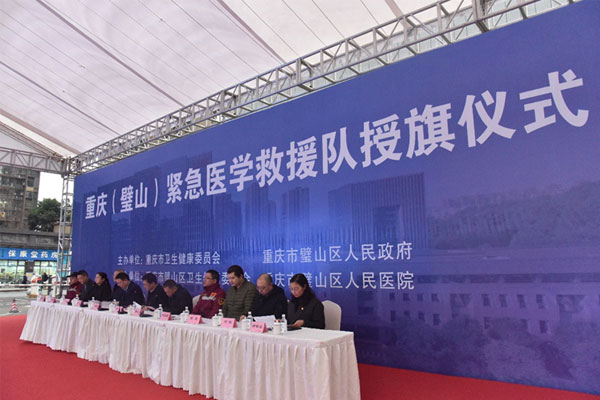 重慶(璧山)緊急醫學救援隊授旗儀式。璧山區衛生健康委供圖