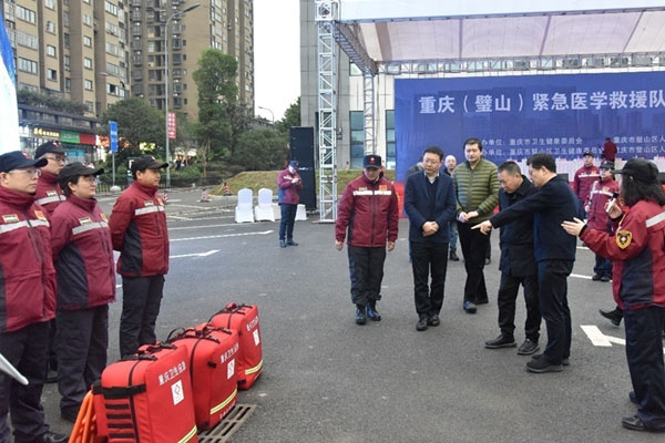 檢閱重慶(璧山)緊急醫學救援隊人員及裝備。璧山區衛生健康委供圖
