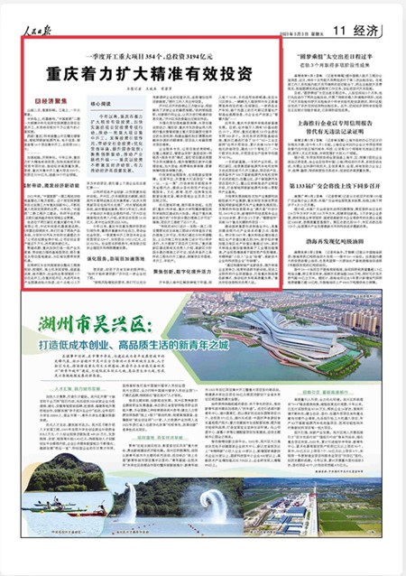 人民日報經濟版頭條:重慶著力擴大精準有效投資