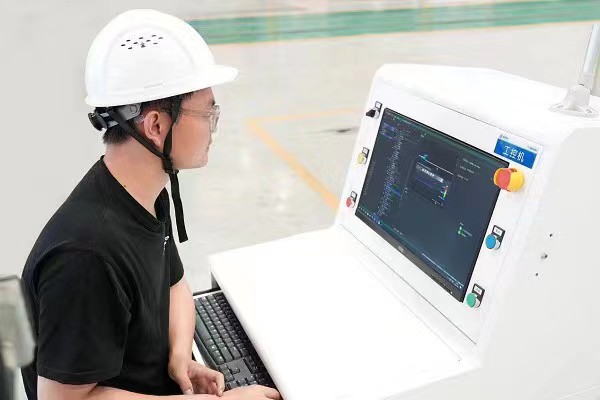 工作人員通過電纜排線智能檢測與智能控制裝備工控機監控生產情況。泰山電纜供圖
