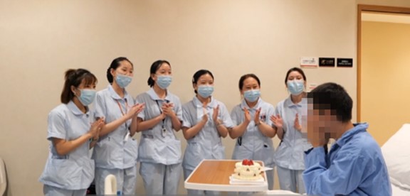 術前醫護人員為患者慶生。重慶當代整形外科醫院供圖