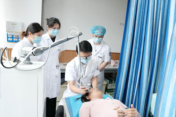 皮膚性病科副主任杜茂濤為患者激光治療痤瘡瘢痕。重慶大學附屬江津醫院供圖