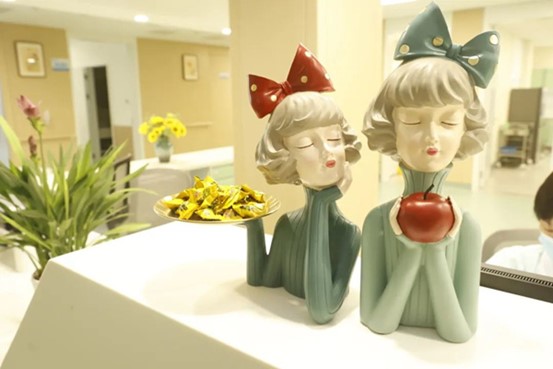 病房門口仿真插花的花瓶,預示著生命的豐富多彩;護士站綠植錯落,向日葵向陽而生,展示著生命的活力;走廊里工筆花鳥畫整齊排列,構成了別樣的“藝術畫廊”……每一個來到西區醫院腫瘤中心病房的人,都能從這些充滿治愈元素的空間里,感受到濃濃的生活氣息。
