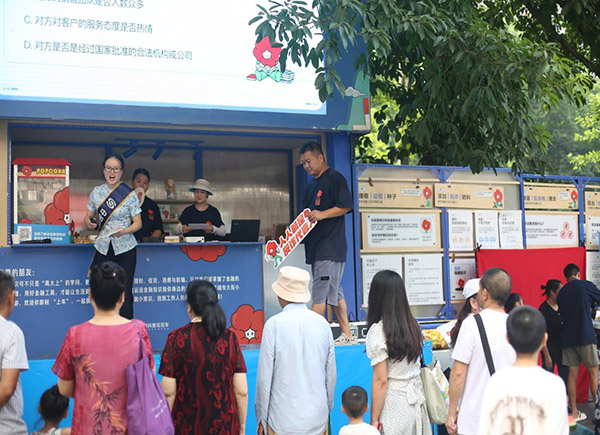 “叔叔阿姨,記清楚哈,代客理財、虛擬投資軟件、收益超高的保本理財、虛擬貨幣等等,這些可能都是詐騙,遇到這種情況該咋個辦?”在金融科普花花車課堂上,民生銀行大坪支行員工聚焦電信網絡詐騙、投資詐騙和網絡詐騙三大主題,化身反詐講師,以現場授課和搶答的方式,把最新的詐騙案例帶到市民身邊。通過學習和互動游戲,不少居民成為了花花車“反詐代言人”,更收獲了知識與小禮品?!敖o民生銀行點贊,讓我們在玩耍中學懂了金融知識,我們也要把今天學到的內容講給更多身邊人聽?!?/p>