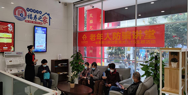 《福壽港灣》是建行重慶長壽支行“福壽之家”特有刊物,其內容幾乎涵蓋了老年人關心的話題如養生、烹飪、旅游、理財、電信網絡詐騙等。此外,為了進一步提高老年人金融素養,提高防詐防騙意識,“福壽之家”還會不定期開設“福壽講堂”講座,主講人以老年人身邊事為切入點,通過播放視頻、一對一講解等方式為老年人科普如何防范電信網絡詐騙、如何選擇適合的理財險等知識。