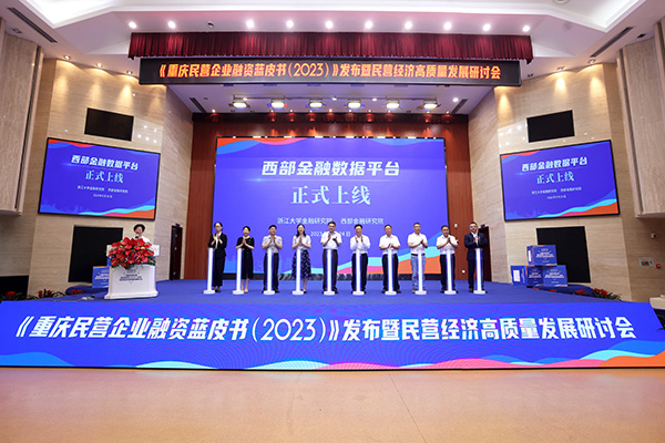 會上,由西部金融研究院、江北嘴財經智庫、浙江大學金融研究院聯合調研編撰出品,中國財富出版社出版的《重慶民營企業融資藍皮書(2023)》(以下簡稱《藍皮書》)正式發布。