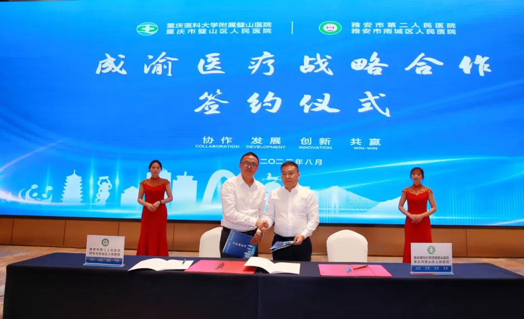 8月25日,重慶醫科大學附屬璧山醫院(重慶市璧山區人民醫院)與四川省雅安市第二人民醫院(四川省雅安市雨城區人民醫院)在雅安舉行成渝醫療戰略合作簽約儀式。
