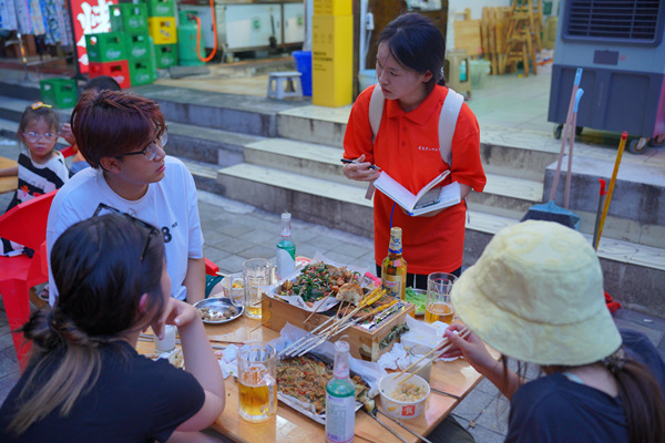 同時,團隊通過視頻推廣帶動人流,拉動夜間消費市場,借助數字技術點亮夜市經濟,提高經營者收入。團隊成員還在現場為經營者進行線上平臺使用教學,把數字化理念傳播給更多的經營者。