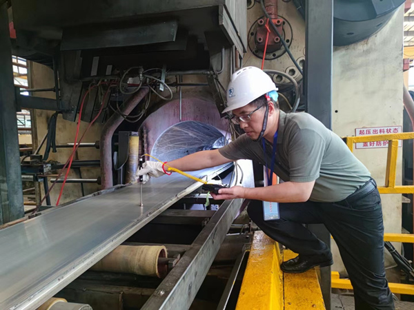 王敬豐在寬幅阻燃型材生產線工作。重慶大學供圖