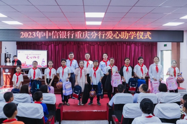 9月8日,中信銀行重慶分行在綦江區永城鎮王良紅軍小學舉辦“賡續紅色血脈,傳承志愿精神”2023年愛心助學儀式。