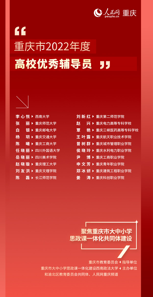 附:重慶市2022年度高校思想政治工作“年度人物”名單