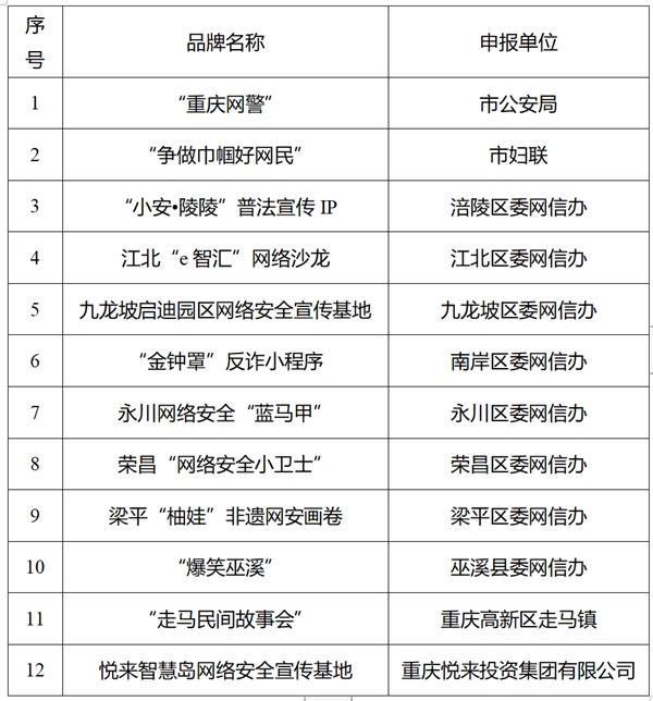除了上述活動外,重慶全市報刊、電視臺、網站、新媒體、戶外媒介等渠道,將在網絡安全宣傳周期間,面向廣大市民,深入宣傳網絡安全知識,增強群眾網絡安全意識和防護技能,營造全社會共筑網絡安全防線的濃厚氛圍。