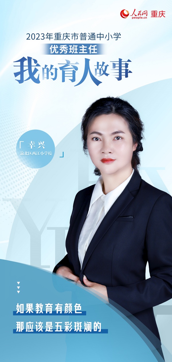 幸興, 渝北區兩江小學校2020級1班班主任、語文老師,渝北區骨干教師,2018年、2022年兩次被評為渝北區優秀教師,2009年、2023年被評為渝北區優秀班主任,所帶班級曾被評為渝北區優秀班集體,曾獲區教學成果一等獎。