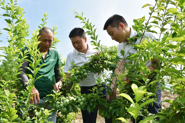 工作人員赴田地走訪,支持脆李產業發展。工行重慶市分行供圖