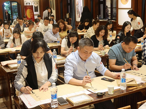 9月底,在重慶解放碑白象街西泠書房內,民生銀行重慶分行開展小微客戶及中小企業客群“凝心聚力·企動未來”主題活動,邀請到70余家企業參與?;顒蝇F場,西泠書房的專業解說員為大家講解了白象街的歷史文化背景,四川美術學院的書法老師為現場教學書法字體、書法技巧等。