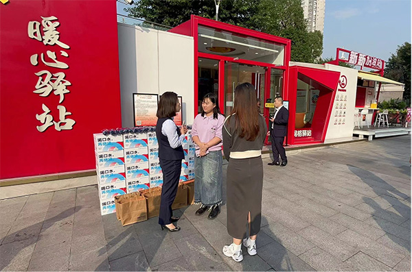 捐贈活動當天,該行為廣大戶外勞動者和客戶群眾提供暖心物資的同時,還通過“暖心驛站”為在場休息的群眾針對性進行反詐知識宣傳,為大家普及常見的金融消費陷阱和防范舉措,幫助大家增強金融風險防范意識和能力。