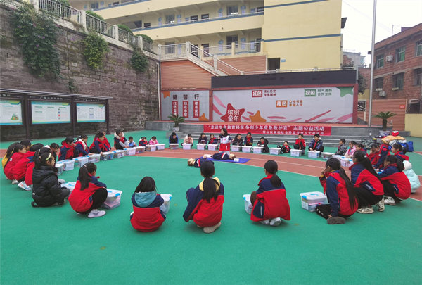12月28日,“少年急救官”生命教育科學藝術展海報捐贈儀式暨安全急救知識進校園活動走進璧山區河邊中學、廣普小學,為近200名兒童開展了應急救護技能培訓。