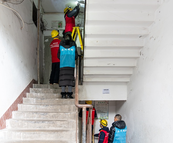 近日,重慶永川文曲路社區和國網重慶永川供電公司網格員共8人,走進永川區玉屏北路1號小區,現場檢修樓道路燈,安裝新的開關、燈泡,在春節前夕讓樓道燈亮了起來。