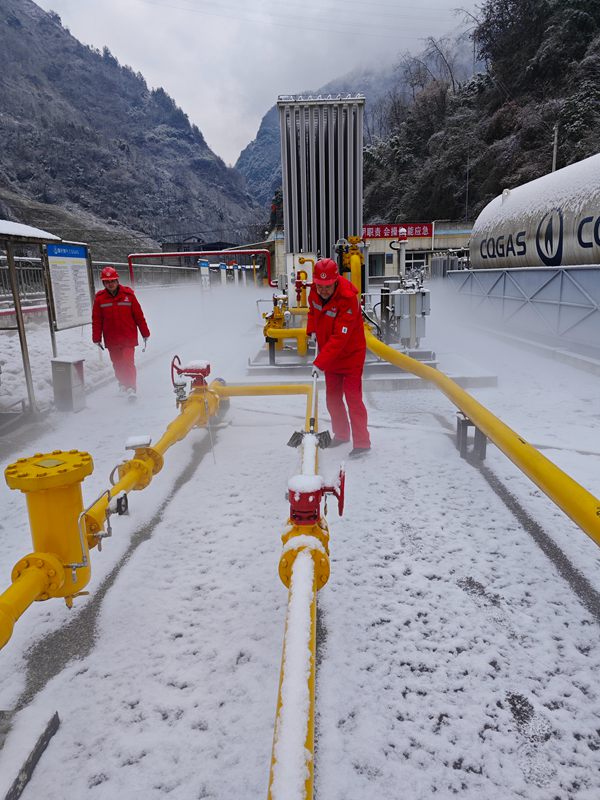 近日,受寒潮低溫天氣影響,重慶地區多地出現降雪天氣,局地有大到暴雪。為保障燃氣平穩供應和設施設備安全,重慶燃氣集團迅速組織各單位加強安全巡檢,做好應急搶險預案,全力保障民生供應。(張艷)