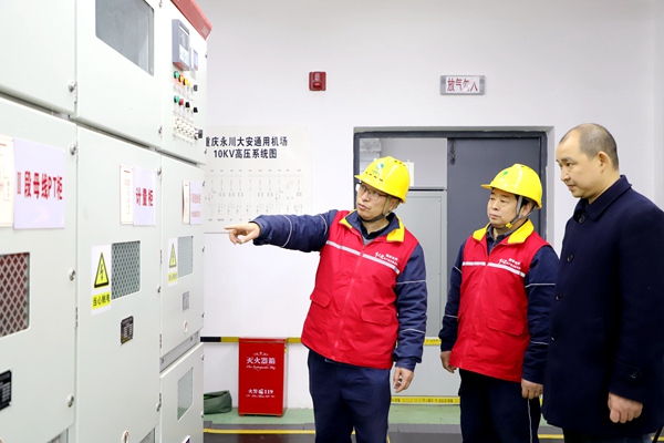 1月27日,國網重慶永川供電公司大安供電所員工李詩彬、龍方明來到永川大安通用機場開展節前安全檢查。